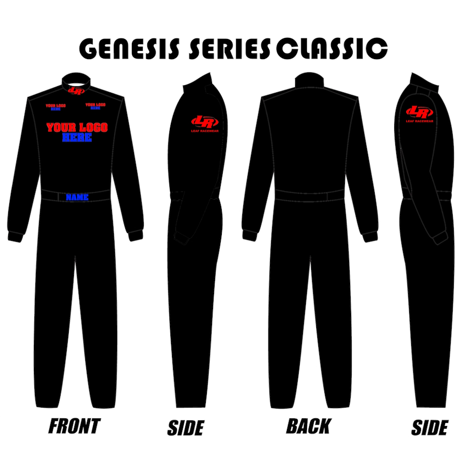 The GENESIS SERIES is the perfect choice for racers who want a pro-level look and tailored fit — without the cost of a fully custom design. Built for value and performance, this double-layer suit is made with a durable Shiny Nomex-style Meta-Para Aramid outer shell and a soft aramid knit liner for lasting comfort and flame resistance.